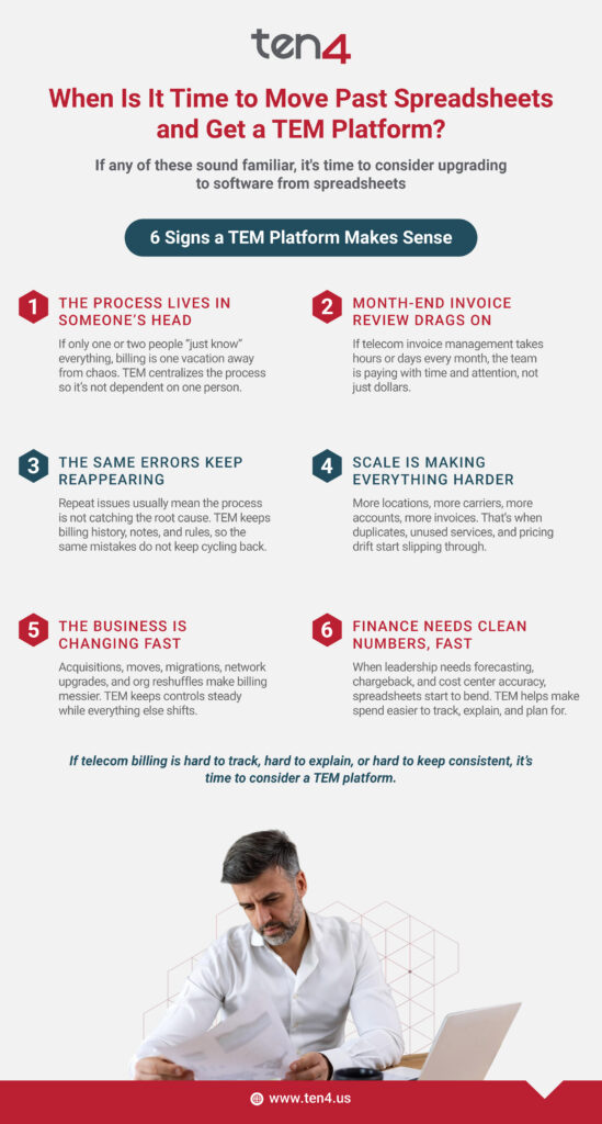 A TEM platform helps a lot, but it still needs good operations around it. Someone has to review exceptions, open disputes, follow through on credits, and keep the process moving.